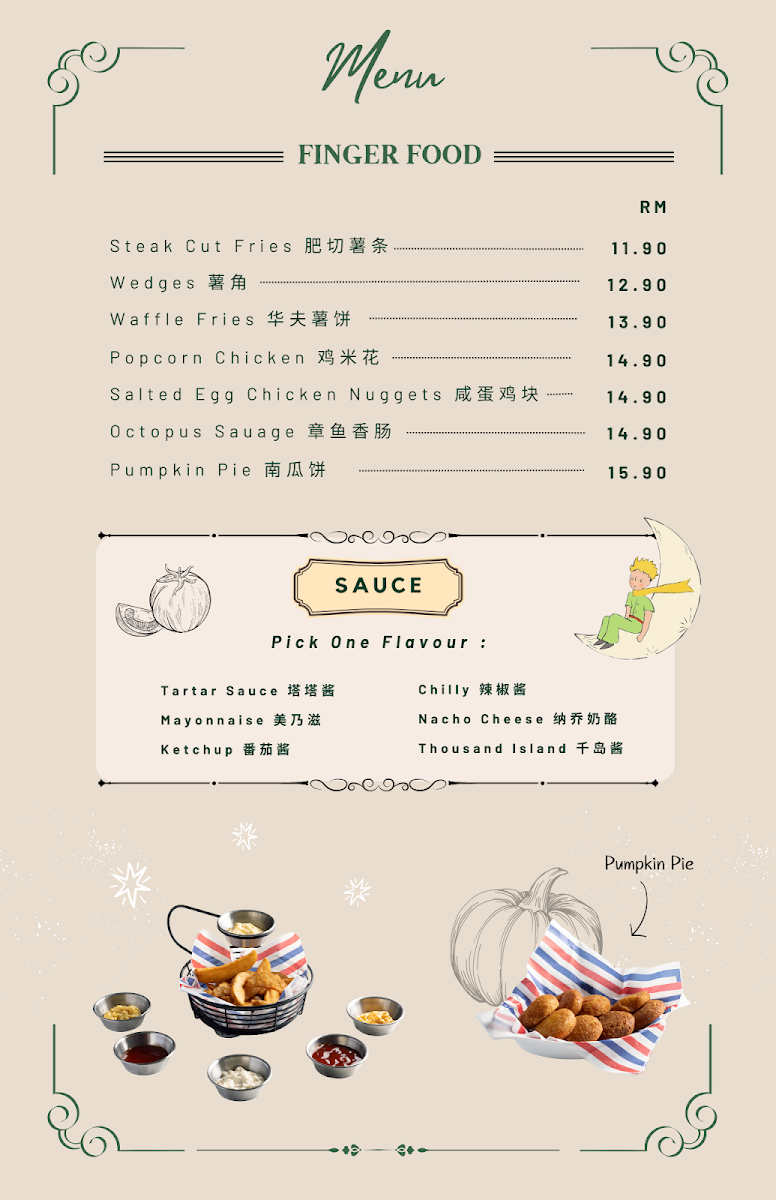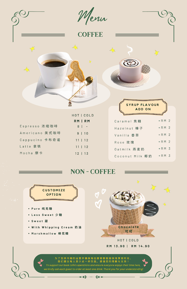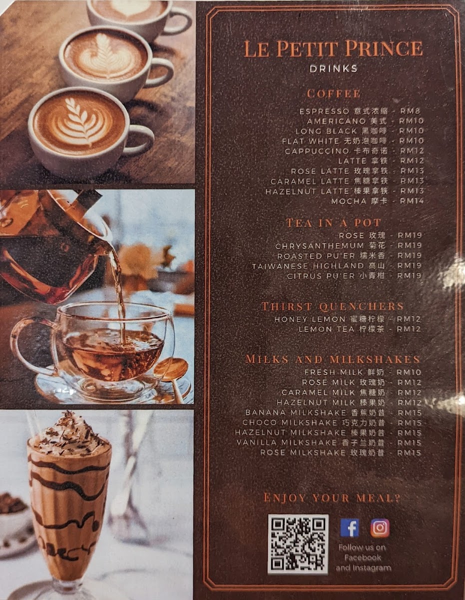 Le Petit Prince Book Cafe offers a cozy and inviting dining experience, where the menu is as charming as its atmosphere. A must-try is their Coffee, which perfectly complements the cafe's relaxing ambiance, providing a rich and satisfying taste for coffee lovers. For a heartier option, the 油焖鸡 (Braised Chicken with Oil and Soy Sauce) stands out as a flavorful, aromatic dish, bringing a delightful depth of taste with tender chicken cooked to perfection in a savory sauce. The menu also features a variety of other options that cater to different tastes, ensuring a satisfying experience for all visitors. Whether you're looking for a light snack or a full meal, Le Petit Prince Book Cafe offers a thoughtful selection of dishes that pair well with its literary-themed setting, making it a perfect spot for both food and book enthusiasts alike.